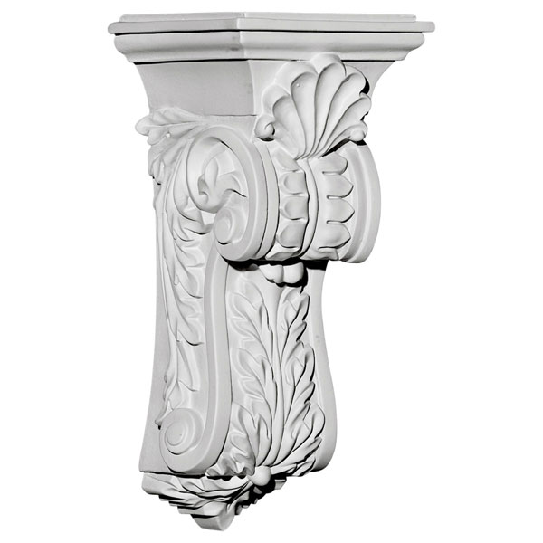 Endurathane Scroll Leaf Corbel, 4 5/8"W x 5 1/4"D x 10 3/4"H, Factory Primed