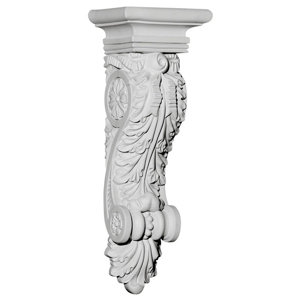 Endurathane Acanthus Ribbon Corbel, 5 3/8"W x 4 1/8"D x 15 1/2"H, Factory Primed