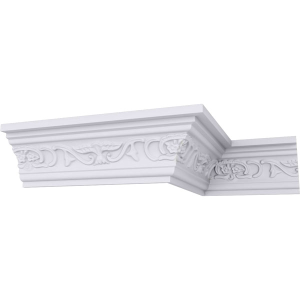 Endurathane Dauphine Crown Moulding, 3 1/4"H x 2 1/2"P x 4 1/8"F x 94 1/2"L, Factory Primed